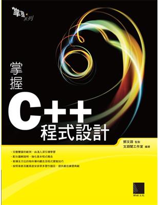 C++ 程式語言兼具高階與低階語言無所不能的強大功能,是學習程式語言的首選,本書以淺顯的文字、生動的圖示、豐富的範例、詳盡的解說,透過「做中學」的過程,達到易讀易懂易學的目的。 本書特色 ◎詳實的基本程式介紹,配合大量圖解說明,引領讀者循序漸進學會 C++ 語言。 ◎由淺入深的引導學習,搭配完整豐富的範例,並提供相關的「立即演練」題組供讀者練習。 ◎章末設置大量的習題,且清楚標示出易、中、難三個等級,讀者可依程度選擇適宜的題目,提供最佳練習典範。 ◎光碟內容收錄了書中所有範例、立即演練及習作的完整檔案,滿足學習上的所有需求,透過本書,全方位的物件導向觀念及程式撰寫技巧就能快速上手。