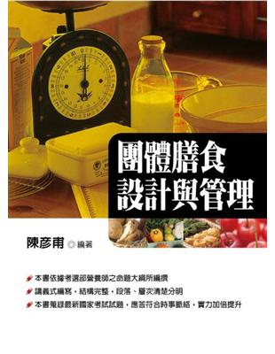 本書依據考選部之命題大綱編撰而成,內容除了有基本食材的認識外,更詳細說明如何規劃場所、供膳作業、設備動線、設計菜單、成本控制、採購驗收、庫房管理與客訴處理等團膳之重要作業,兼具理論分析與實務解說。