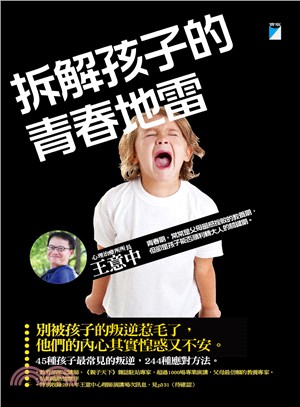 別被孩子的叛逆惹毛了,他們的內心其實惶惑又不安。青春期,常常是父母最感挫敗的教養期,但卻是孩子能否順利轉大人的關鍵期。‧45種孩子最常見的叛逆,257種應對方法。‧教育部部定講師、《親子天下》雜誌駐站專家,超過1000場專業演講,父母最信賴的教養專家。‧2014年王意中心理師演講場次,至今已超過150場,詳見「王意中部落格」。青春期孩子,處處是地雷?但在孩子內心,充滿著沒說出口的焦躁與徬徨。爸媽: